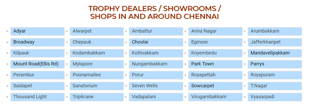 Trophy Dealers / Manufacturers / Makers in Chennai